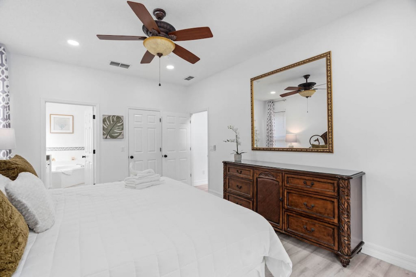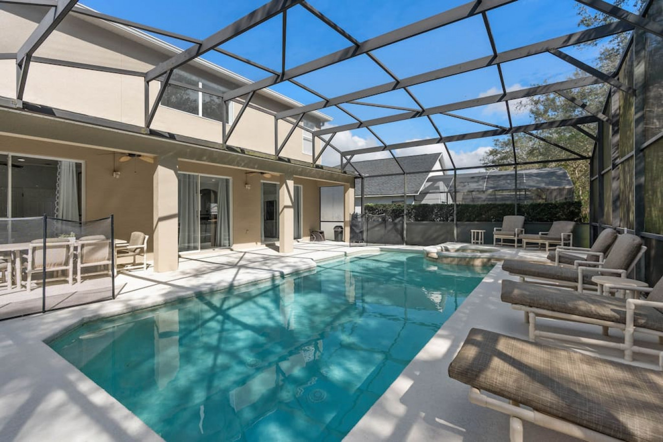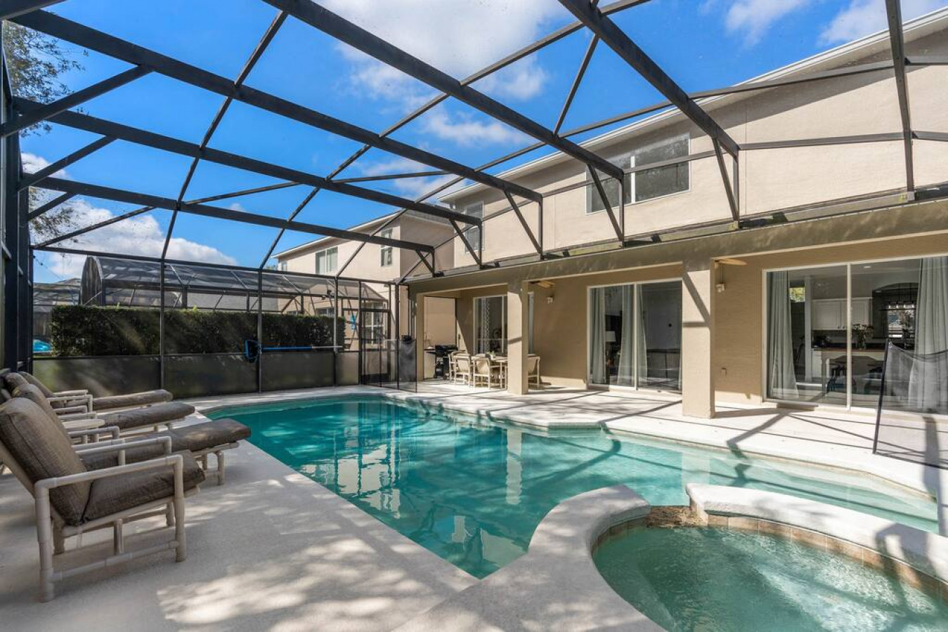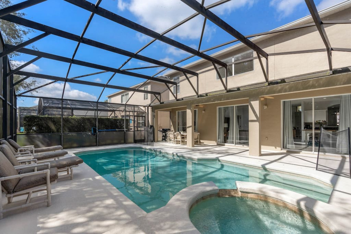 August 2024 5.00This was exactly what we were looking for as we enjoyed the property with my entire family, party of 9 and a small Yorkie. All the rooms were very comfortable and had everything we needed for our entire stay. The pool and the jacuzzi was also very nice as we enjoyed it the whole stay, even at night after a long day at the parks. The kids loved it. The heated pool and jacuzzi made it that much better. The complimentary BBQ was nice to enjoy the food we wanted, which was better than going to a restaurant. There was a minor issue with one of the bathrooms but it was fixed almost immediately. Overall, the place was as described and we will definitely be returning to this property as we loved and enjoyed our time there. The host was very hospitable and very attentive and quick to respond to our every need. Two thumbs up!
